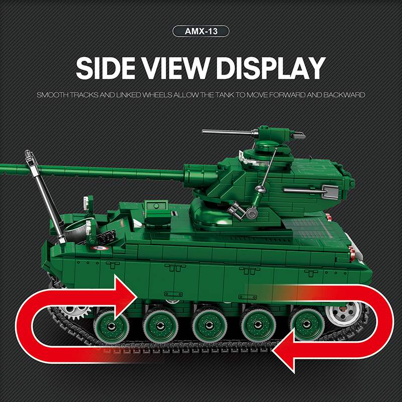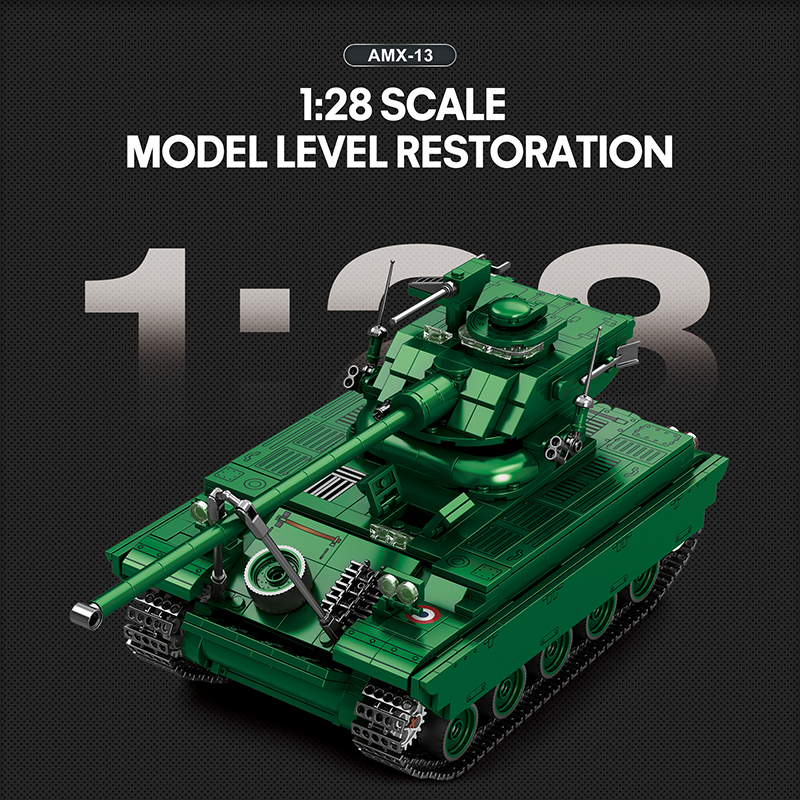 El Tanque AMX-13 es uno de los carros de combate más innovadores y reconocibles del siglo XX, y Reobrix lo recrea con todo detalle en este impresionante set de 1037 piezas. Con unas dimensiones finales de 30 x 14,3 x 13,9 cm, este modelo destaca por su presencia imponente y su cuidada fidelidad histórica, ofreciendo una experiencia de construcción avanzada y profundamente inmersiva para los amantes del modelismo militar.