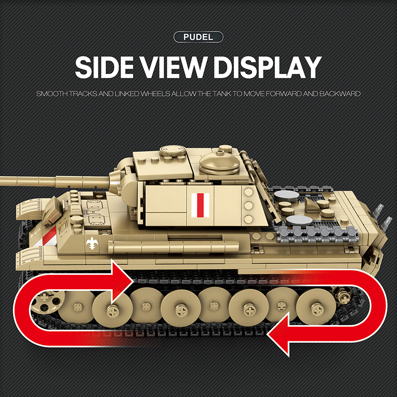El Tanque Pudel es una pieza única dentro de la historia militar y del universo World of Tanks. Reobrix recrea este singular carro de combate con un set de 969 piezas, ofreciendo una experiencia de construcción profunda, técnica y altamente inmersiva. Con unas dimensiones finales de 28,6 x 11 x 10 cm y una escala aproximada 1:23, este modelo destaca por su presencia sólida y su extraordinario nivel de detalle.